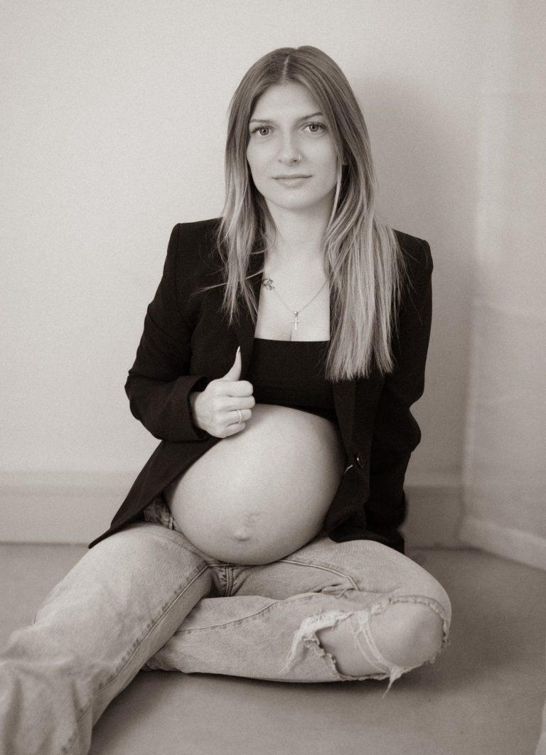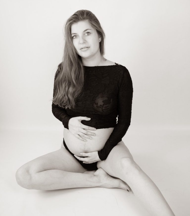 Das mini Babybauch-Fotoshooting findet in meinem Studio und unter der Woche statt.